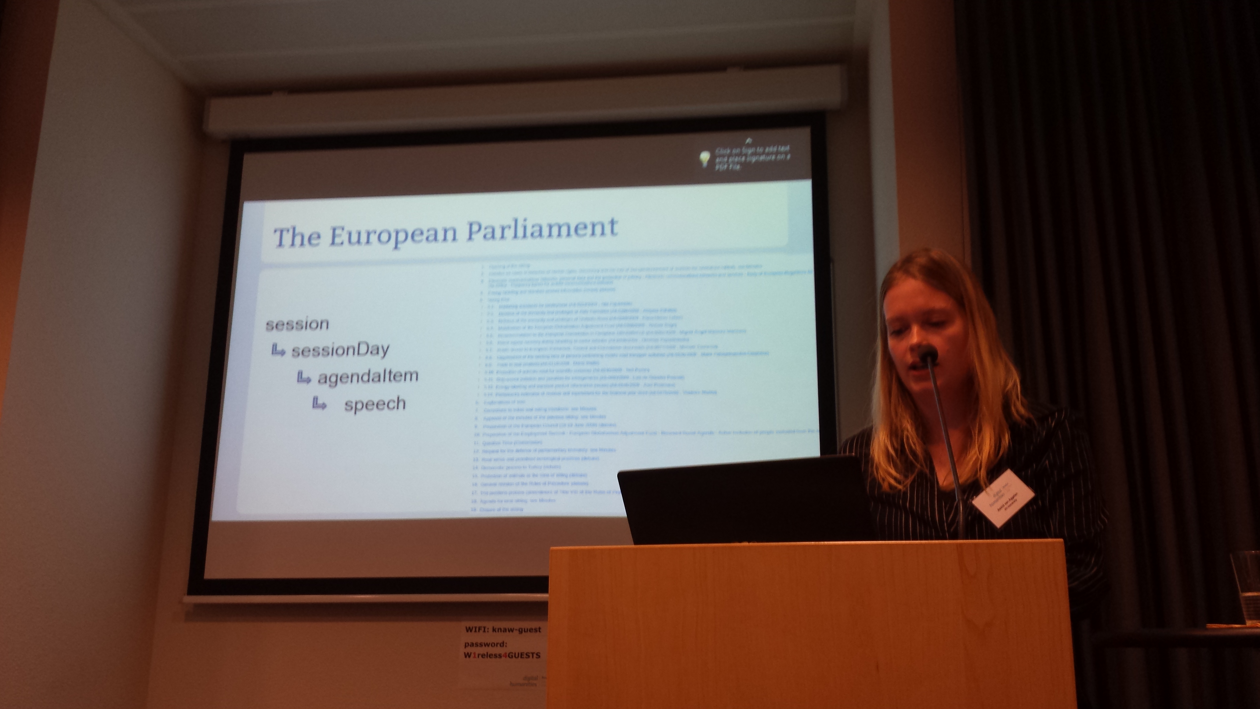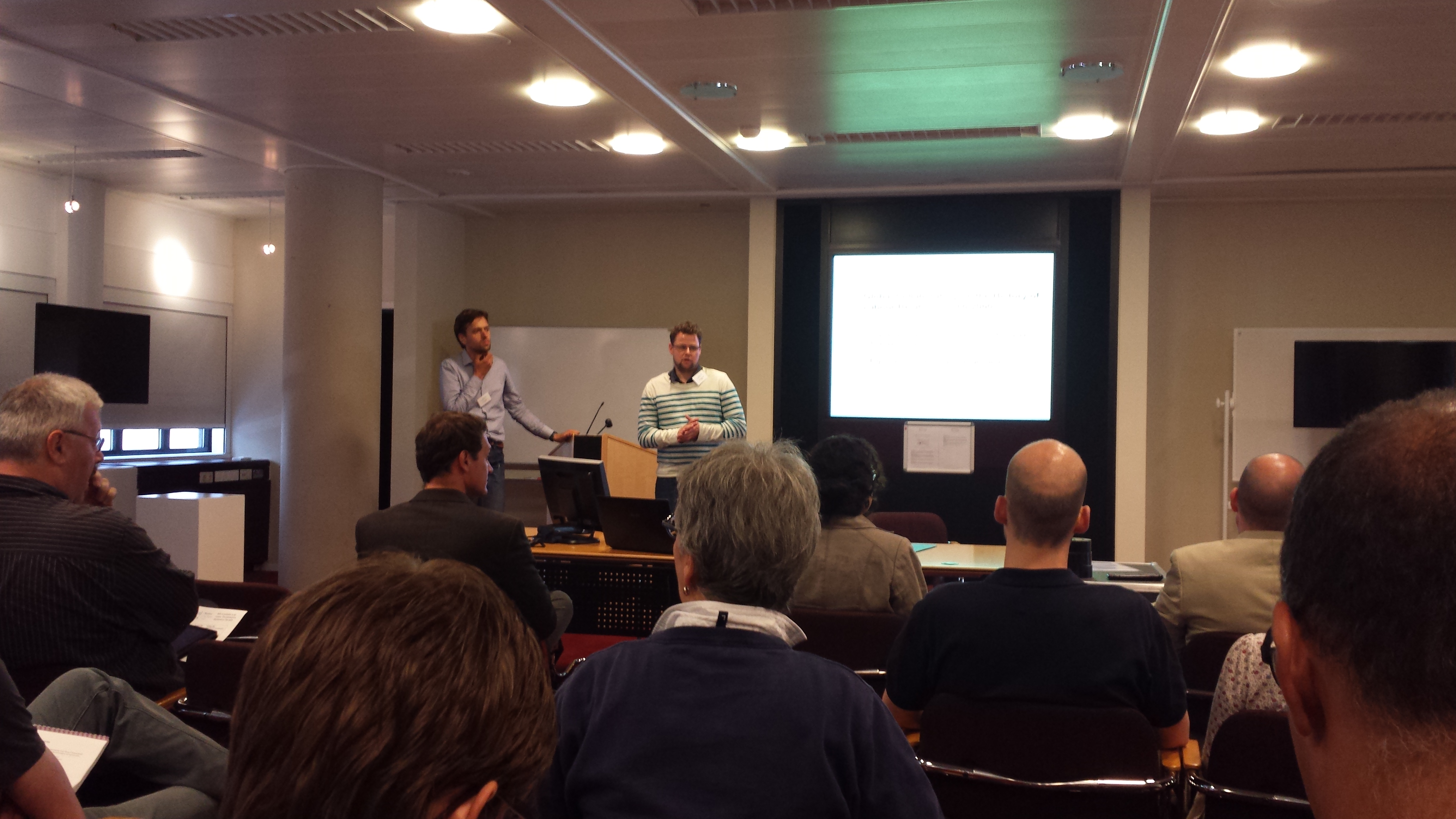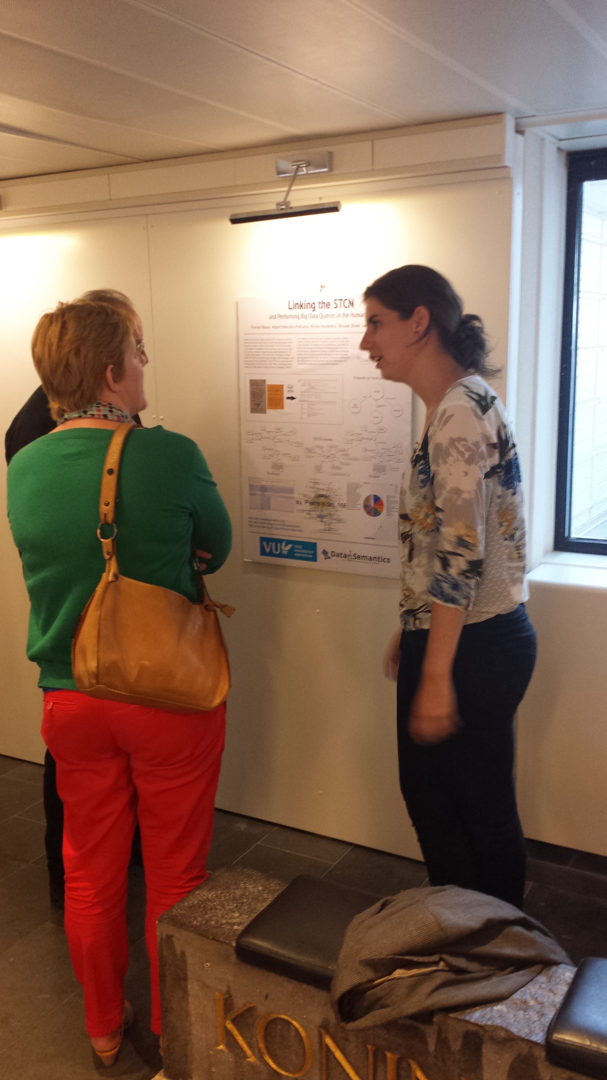 The second day was a bit more academic. I joined the About DH (2) session, where the need of learning programming by scholars was nicely stressed, DH was nicely put into the discussion of philosophical inquiry, and the new minor on Digital Humanities in Amsterdam was put on the map. The last session covered the most relevant topic to me and CEDAR: Linked Data in DH. Three papers where presented there: ours, together with Wouter Beek, Rinke Hoekstra, Fernie Maas and Inger Leemans on Linking the STCN and Performing Big Data Queries in the Humanities. Also, Astrid van Aggelen presented work on Linking the European Parliament Proceedings. Alina Saenko stressed the need of persistent URIs in Linked Data for the DH. It was nice that the VU had participation in two out of three papers of this session.